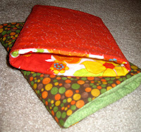 Hence, the orange outer fabric & floral inner fabric in the picture of the finished product above. I decided to make a second one in different colors & give her both so that